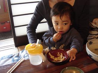 最後にご飯だけを、Mamaに食べさせてもらって・・・・、 『ご馳走様』